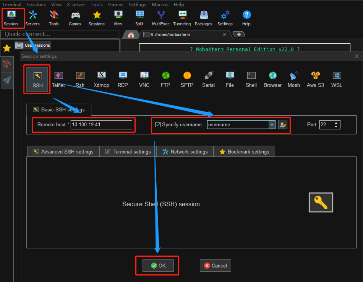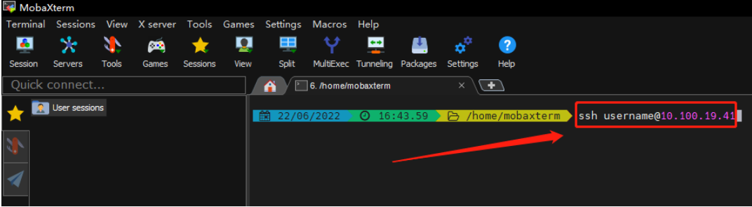 2. 使用ssh命令行登录,如使用mac,linux等系统(以mobaxterm工具举例)