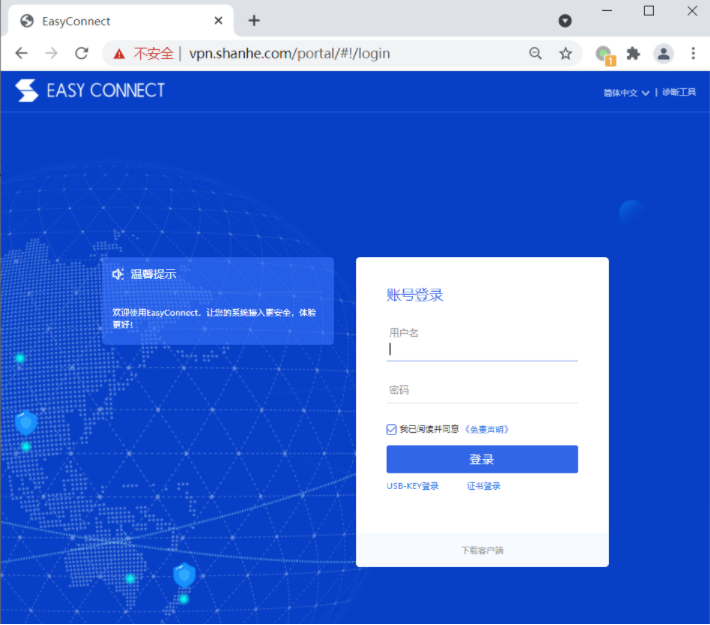 1. 打开浏览器,输入地址 https://vpn.shanhe.com ,如图所示