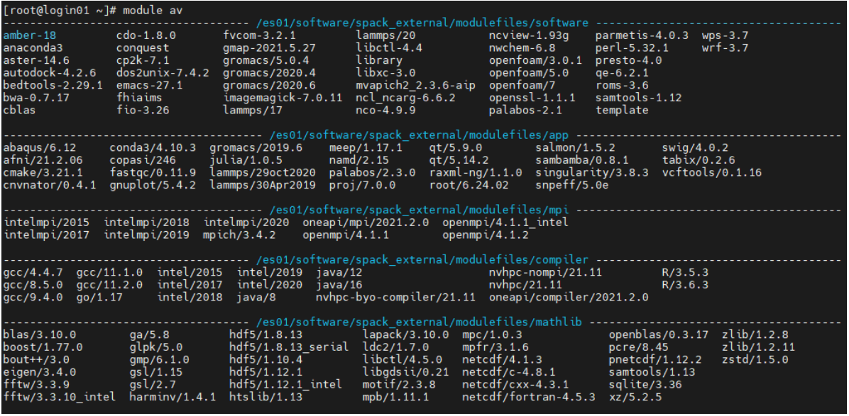 module avail 列出所有软件环境,可缩写为 module av