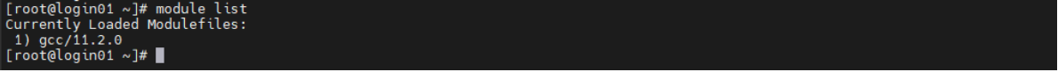 module unload 删除相应的软件环境,命令后跟要取消加载的软件,还是以 gcc/11.2.0 为例
